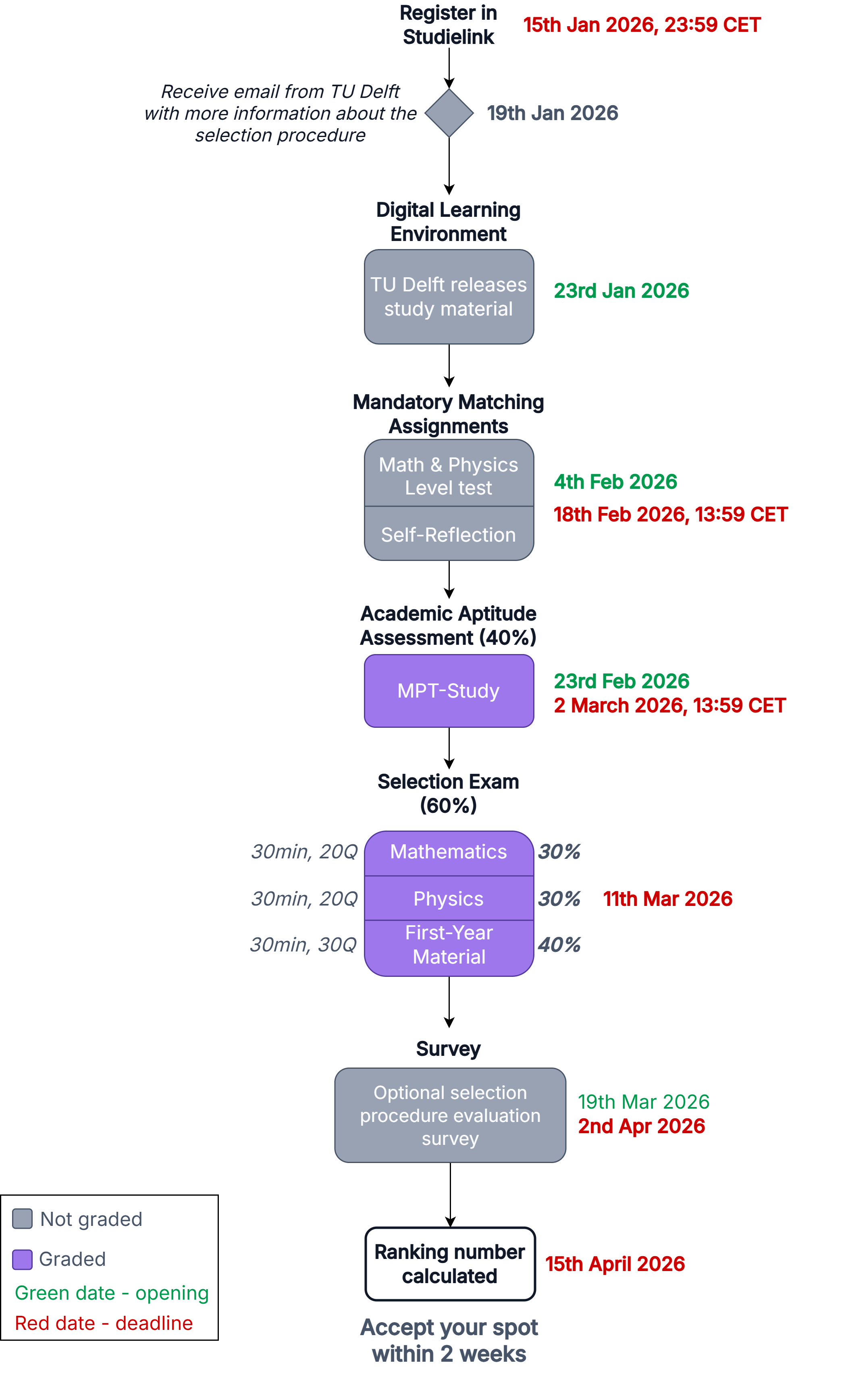 Questions? For official procedures, contact TU Delft at selection-ae@tudelft.nl. For preparation support, reach out to us at contact@delftprep.nl.
